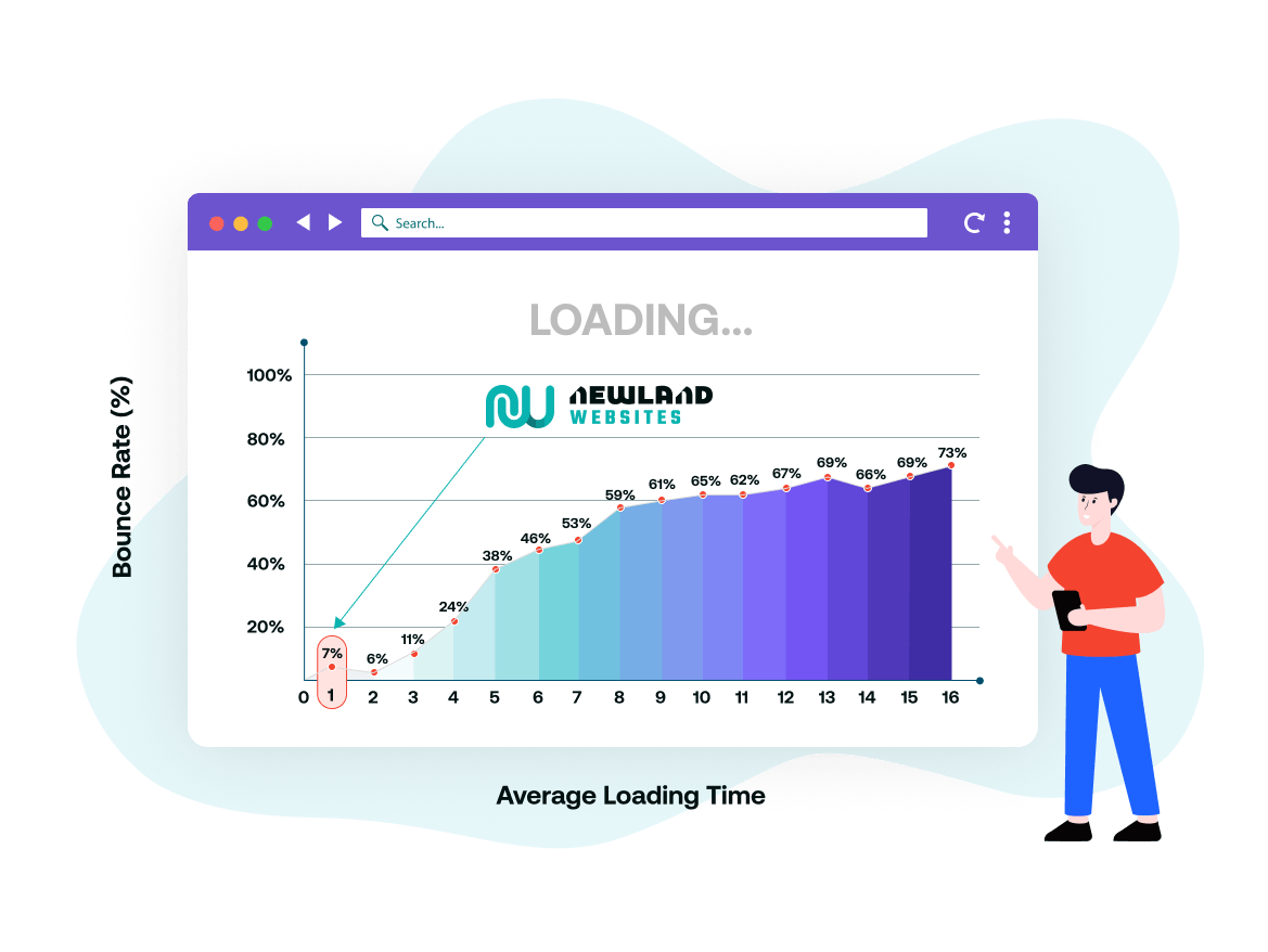 Our modern coding technologies speed up page load time. Our websites generally fully load in under one second. Do not let users bounce from your website because of page load speed issues. See the diagram below for the bounce rate of users depending on page load speed.
